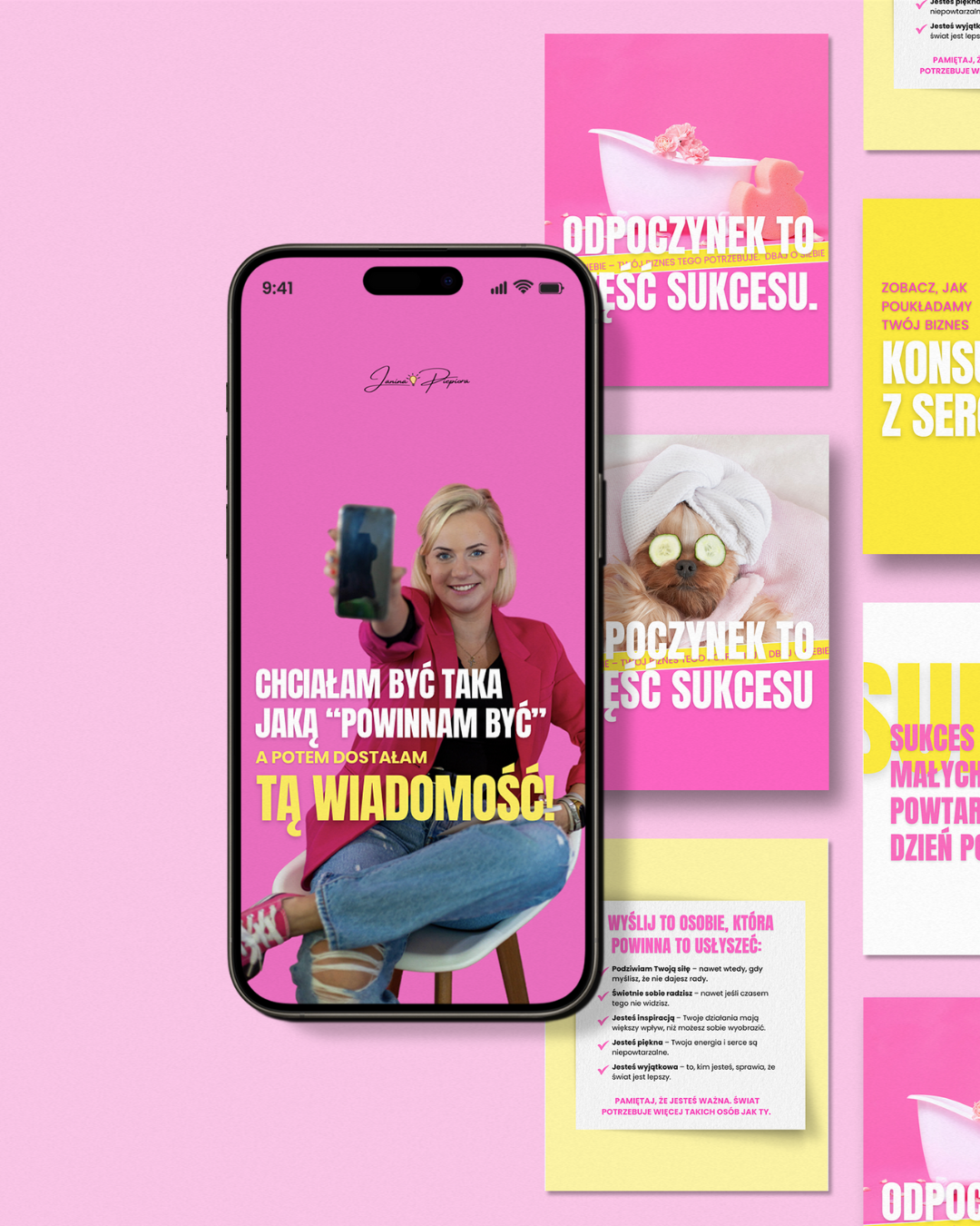 Odbiór grafik był cudowny, dostaję feedback, że odbiorcy od razu wiedzą, iż dana grafika czy reklama jest moja 🙂 Cała oprawa graficzna bardzo kojarzy się z moją marką, odzwierciedla moją energię, osobowość i charakter. A właśnie na tym zależało mi najbardziej.